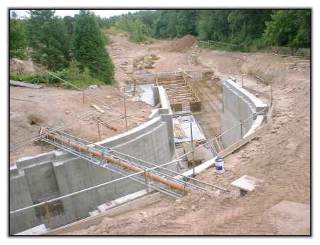 An overall view of the lift hill tunnel shows that soil has been used to fill in the edges of the concrete, and work can be seen going on in the loading station.