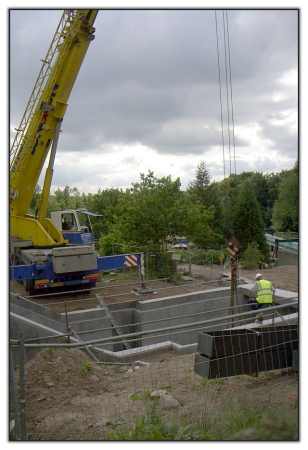 The crane is being used to install the tunnel track pieces, and the roof for the tunnel itself.