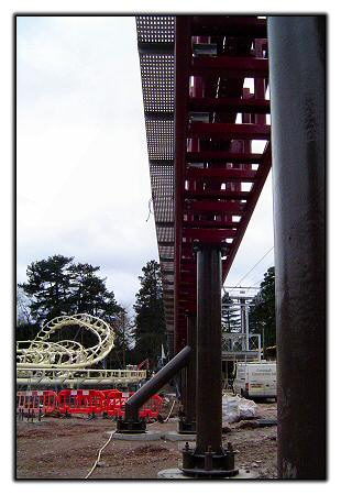 Underneath the launch, looking towards the station. Guests will get a fantastic view as the train roars directly above their heads!