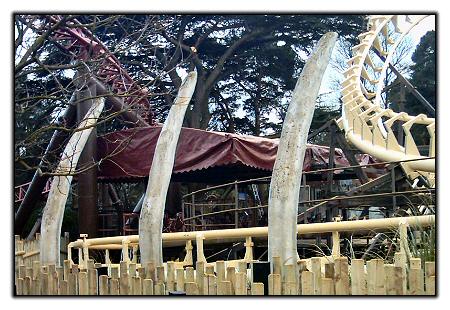 | Corkscrew's new canopy is now in place. Maroon replaces the old pale green, and the station barriers are to be painted in the same shade of red as the ones on Rita's platform. |