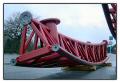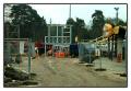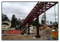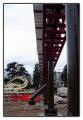 Steelwork in storage awaiting installation. This is a slightly lighter brown than that of the supports. Possibly for the station? |