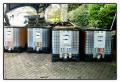 These reservoirs, currently stored in Fountain Square, are full of hydraulic oil. |
